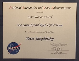 Weiters betreibt Peter Jakadofsky Forschung und Entwicklung im Bereich unbemannter Hubschraubertechnologie, wo der von ihm entwickelte Turbinenuniversalmotor zum Einsatz kommt. Er erhielt als Teil des "Sea Grass/Coral Reef UAV Teams" 2013 den Ames Honor Award von der NASA verliehen[4].