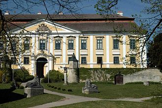 Hauptfassade des Sütraktes und übergiebeltes Portal von Schloss Gobelsburg
