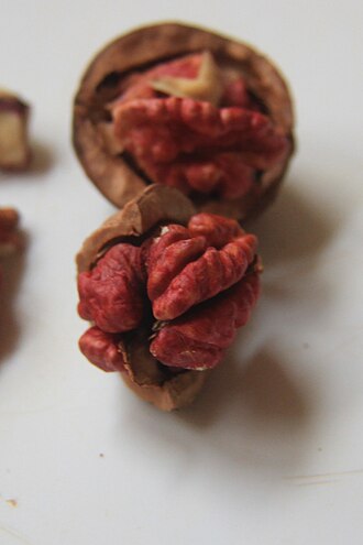 Die Rote Donaunuss oder Donaublutnuss ist eine seltene Walnussart, die erst in den letzten Jahren wieder entdeckt wurde. Die Nuss, die äußerlich einer üblichen Nussart entspricht, hat einen Kern, der mit einer roten Haut überzogen ist und einen milden Geschmack und ein feines Aroma aufweist.