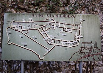 - ↑ vgl. Burgruine Starhemberg, Wehrbauten.AT, abgerufen am 8. August 2020