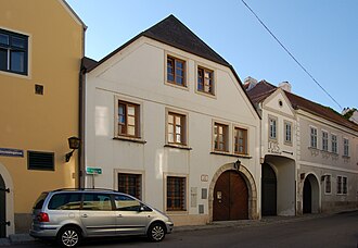 Dem Schottenstift gehörten im 16. Jahrhundert in Nussdorf (heute Teil des 19. Wiener Gemeindebezirks) zwei Höfe. Der Hof auf Greinergasse 31 stammte aus dem 16. Jahrhundert, der auf Greinergasse 33 aus dem 17. Jahrhundert. Beide Höfe hatten 1709-1767 verschiedene private Besitzer. Seit 1767 gehörten sie dem im Herzogtum Bayern gelegenen Kloster Aldersbach. Nach dessen Säkularisation im Jahr 1806 kamen sie in den Besitz der bairischen Staatsgüteradministration. Seit 1816 gehörten sie dem Stift Klosterneuburg, das sie 1820 an den Fleischhauermeister Paul Neumayer verkaufte.[1]