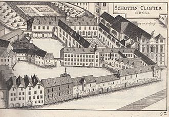 - ↑ Im Mittelalter wurde auf dem "europäischen Kontinent" nicht zwischen schottischen und irischen Missionaren und Mönche unterschieden, daher galten die irischen Mönche in Wien als schottische Mönche.