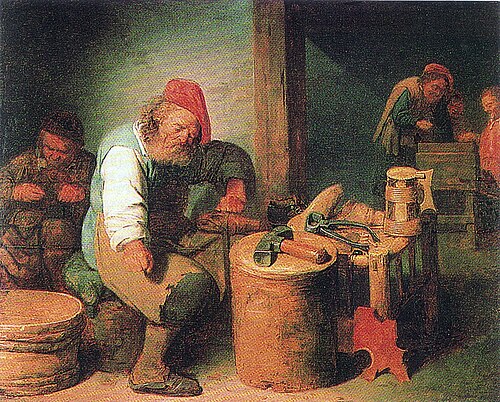- Heute klagt auch der einzige Schuster sehr über schlechten Geschäftsgang, tagelang ist er ohne Arbeit.[10]