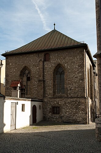 - das "Schneiderkirchlein" zu "Unserer Lieben Frau" (heute Pfarrplatz 3): Eine Stiftung von Heinrich Reichschneider, die zu Beginn des 15. Jahrhunderts (vor 1410) an der Südseite der Nikolauskirche erbaut worden war.[1]
