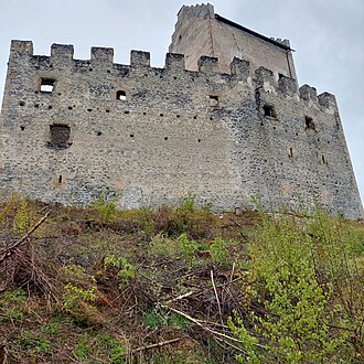 - ↑ Die Ministerialen, auch als "Dienstadel" bezeichnet, bildeten im Mittelalter innerhalb des "niederen" Adels eine eigene Gruppe. Ursprünglich "Unfreie", waren sie durch ein Dienst- oder Lehnsverhältnis in den "niederen" Adel aufgestiegen, im Unterschied zu den "edelfreien" oder "hochfreien" Adelsfamilien.