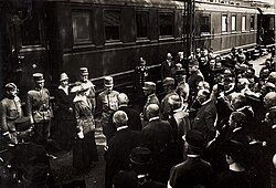 Am 12. Mai 1918 begleitete Tamás Erdődy Kaiser Karl I. auf einer Fahrt in das Hauptquartier der deutschen Heeresleitung in der belgischen Stadt Spa, wo es zu einem Aufeinandertreffen mit dem deutschen Kaiser Wilhelm II. kam.[55] Diese Fahrt wurde von der Presse als Canossa-Gang gewertet und führte dazu, dass sich Österreich-Ungarn dem verschärften Kriegskurs des Deutschen Reiches beugen musste.[56]