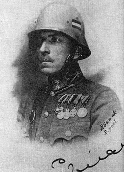 In den nächsten Tagen forderte der Stadtkommandant von Budapest, Géza Lukachich von Somorja, ein Träger des Ritterkreuzes des Militär-Maria-Theresien-Ordens,[76] Tamás Erdődy telefonisch auf, bei Karl umfangreiche Vollmachten für ihn zu erwirken, um die "immer unhaltbarer werdende" Lage in der Stadt in den Griff zu bekommen. Laut Erdődy standen in Budapest einige Infanterie-Regimenter, die sich aus loyalen Soldaten aus Bosnien und den bäuerlichen Gegenden Ungarns zusammensetzten, die jedem Befehl Lukachichs gefolgt wären und binnen Stundenfrist die Opposition ausgeschaltet hätten. Lukachich von Somorja schickte zusätzlich noch einen Kurier mit einer schriftlichen Aufforderung, aber Karl blieb bei seiner ablehnenden Meinung auf Zivilisten schießen zu lassen:[77]
