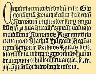 Der Vertrag von Wiener Neustadt beendete den Konflikt des Kaisers mit Matthias Corvinus um die Nachfolge im ungarischen Königreich und überbrückte für einige Jahre die Interessensgegensätze der beiden Herrscher.[6]