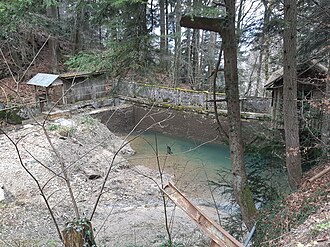 Der Weiher am Klausmühlebach in der Gemeinde Lochau in Vorarlberg ist ein künstlich aufgestauter, öffentlich grundsätzlich nicht zugänglicher Fischweiher.[1] Aufgrund weitgehend fehlender Absperrungen ist der Zugang jedoch nicht beschränkt.