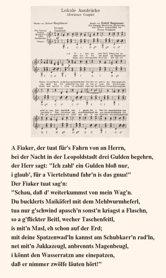 - A Fiaker, der tuat für's Fahrn von an Herrn, bei der Nacht in der Leopoldstadt drei Gulden begehrn