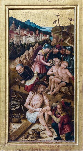 - An ihn erinnert außerdem ein Altarflügel, der während seiner Amtszeit als Abt um 1505 geschaffen wurde und bis heute im "Kreuzigungsaltar" der Kirche erhalten geblieben ist.[1]